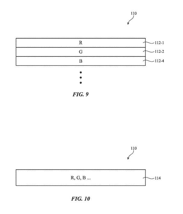 在圖9的示例中,全息圖結(jié)構(gòu)110可包括多層全息圖,用于衍射不同波長的光。層112可以是全息記錄介質(zhì)的全息薄膜。可在每一層112記錄一組相應(yīng)的全息圖以衍射光。例如,第一層112-1可以在第一波長處衍射光,如紅光;第二層112-2可以在第二波長處衍射光,如綠光;第三層112-3可以在第三波長處衍射光,如藍(lán)光。