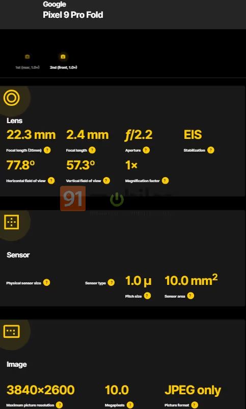 谷歌 Pixel 9 Pro Fold 手機背面配有4800 萬像素主攝,頁面信息顯示在 Pixel-binned 情況下為 1200 萬像素。