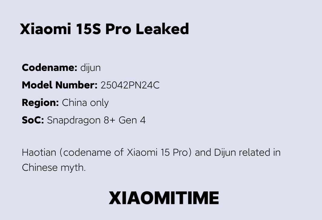 此外還有消息稱小米 15S Pro 手機內部代號為“dijun”,應該是指帝俊。
